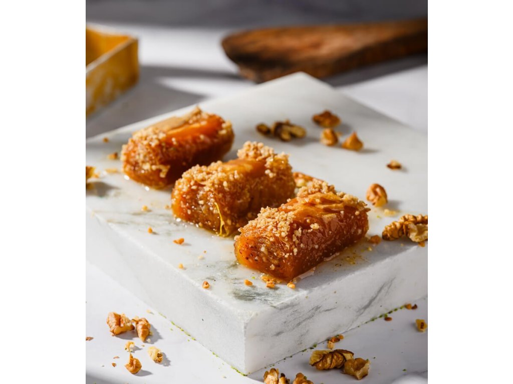 Toto balení obsahuje 3 porce jednotlivě balené Baklavy. Každý kousek váží 60g.