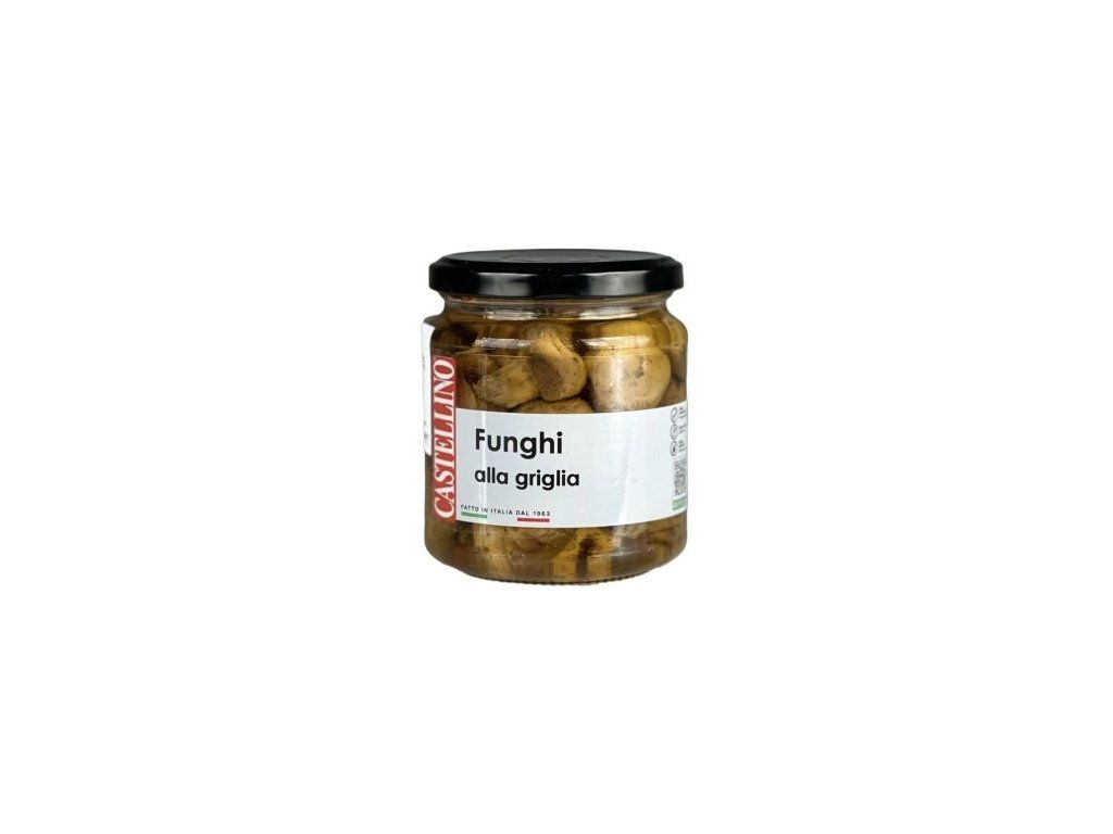 Složení: grilované žampiony “Agaricus Bisporus” 58%, slunečnicový olej, sůl, vinný ocet z bílého vína, koření, regulátor kyselosti: kyselina citrónová, antioxidant: kyselina askorbová.