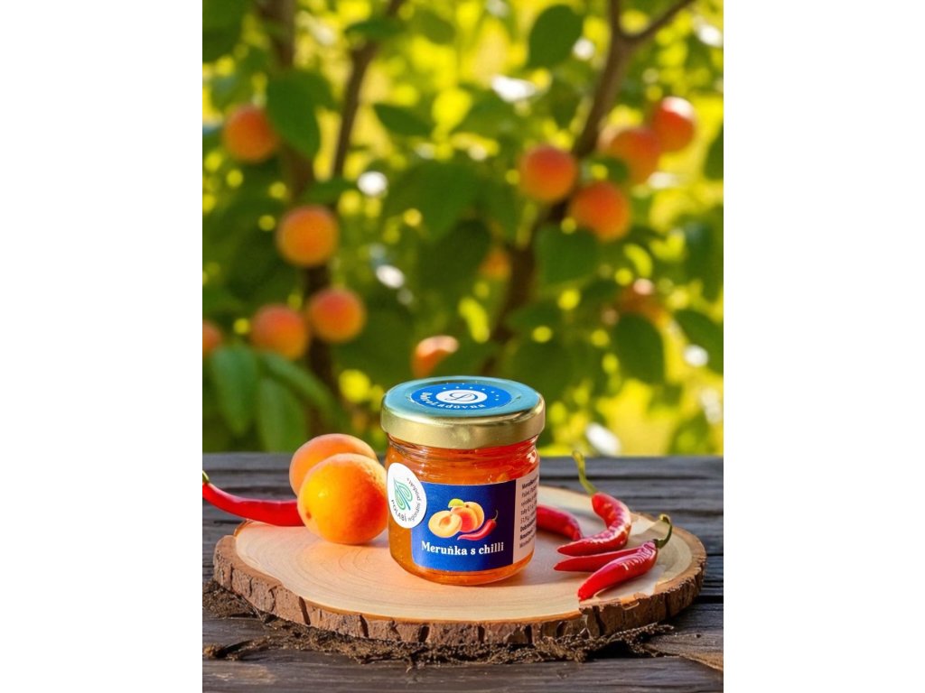 Složení: meruňky (52%) cukr, chilli, želírující látka: pektin.