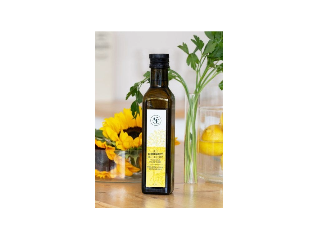 Slunečnicový olej obsahuje významné množství vitamínu E a beta-karotenu. Olej se vyznačuje výraznou žlutou barvou a je lisovaný z odrůdy olejné slunečnice high oleic s vysokým podílem kyseliny olejové.
