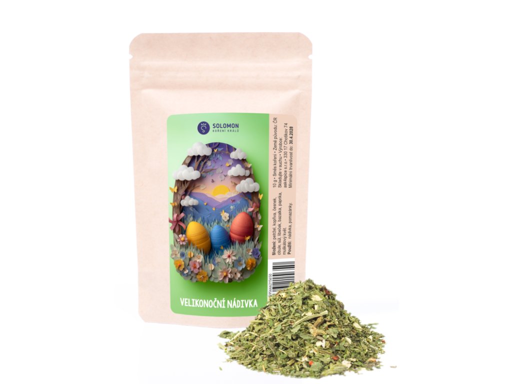Směs jarních bylinek s petrželkou a tradiční mladou kopřivou. Směs do velikonoční nádivky se používá do vaječných jídel, pomazánek nebo polévek. Jako všechny bylinky, ani směs na velikonoční nádivku, nemá ráda tepelnou přípravu. Při dlouhém vaření bylinky rychle ztrácejí svoji sytou barvu i chuť, proto je ideální přidávat bylinky například do polévky až na závěr, a nechat je pouze krátce natáhnout vlhkost.